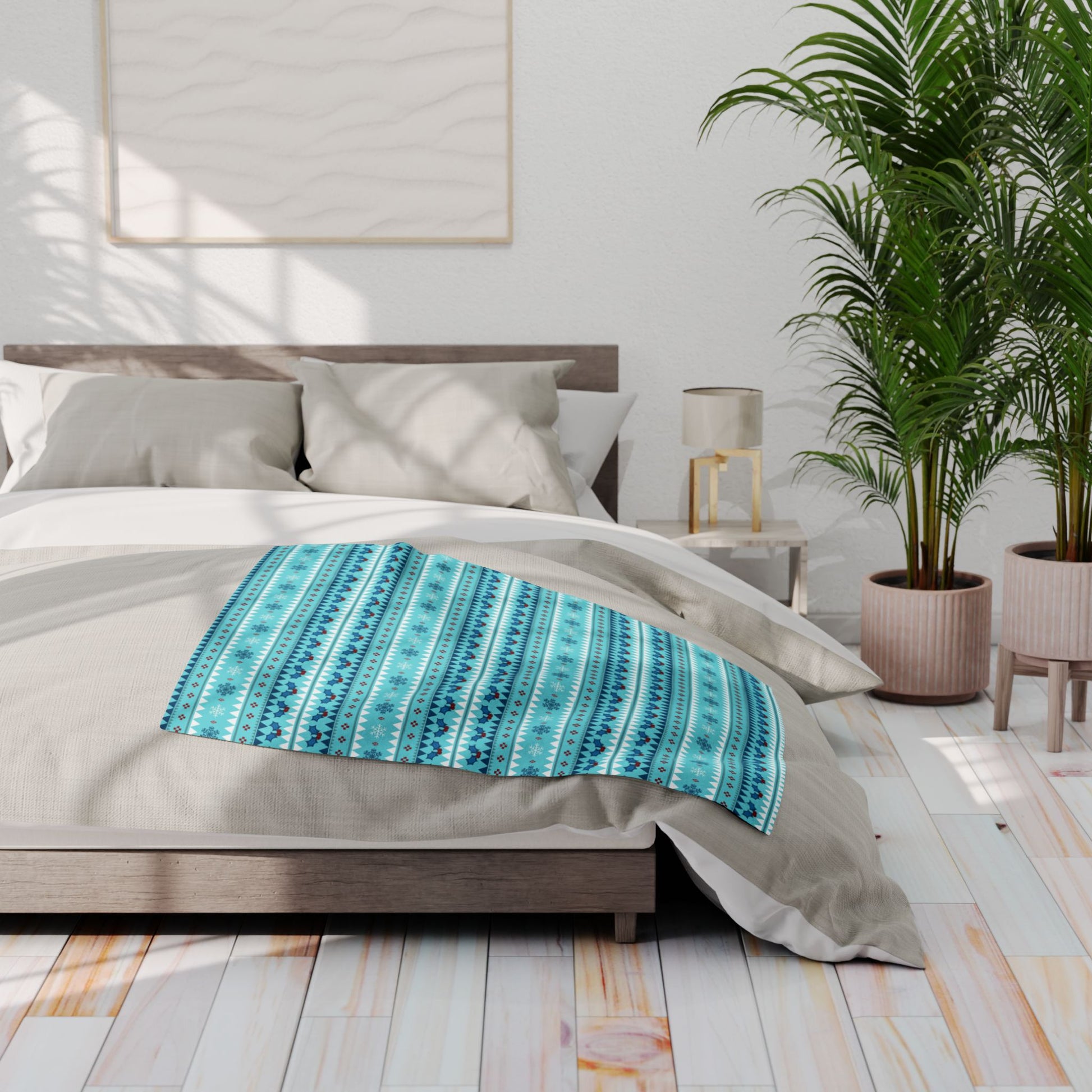 Wrap yourself in winter magic with our Arctic Snowfall Fleece Blanket, featuring a serene palette of icy blues, soft aquas, and delicate snowflake motifs. The repeating Nordic-inspired pattern brings a festive, wintry charm to any room while staying clean, modern, and irresistibly cozy.