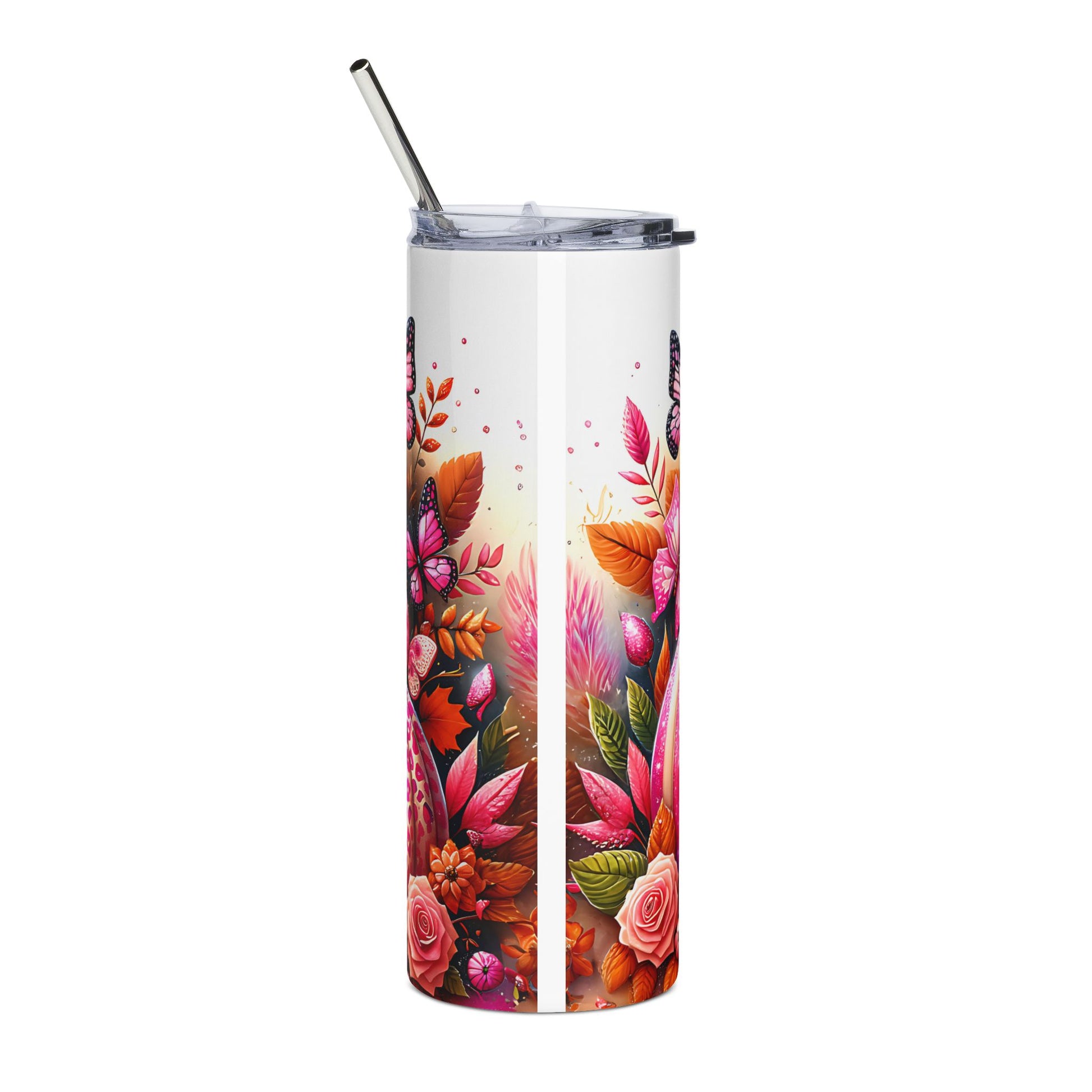 Celebrate strength this season with a touch of autumn charm. This 20oz tumbler features a Breast Cancer Awareness wrap filled with pink and pink-themed pumpkins, accented by bright sunflowers for a cozy fall look. The word “Survivor” stands proudly within the design, reminding us of courage, hope, and resilience. Functional and stylish, this tumbler is perfect for keeping your drinks hot or cold while honoring survivorship in every season.