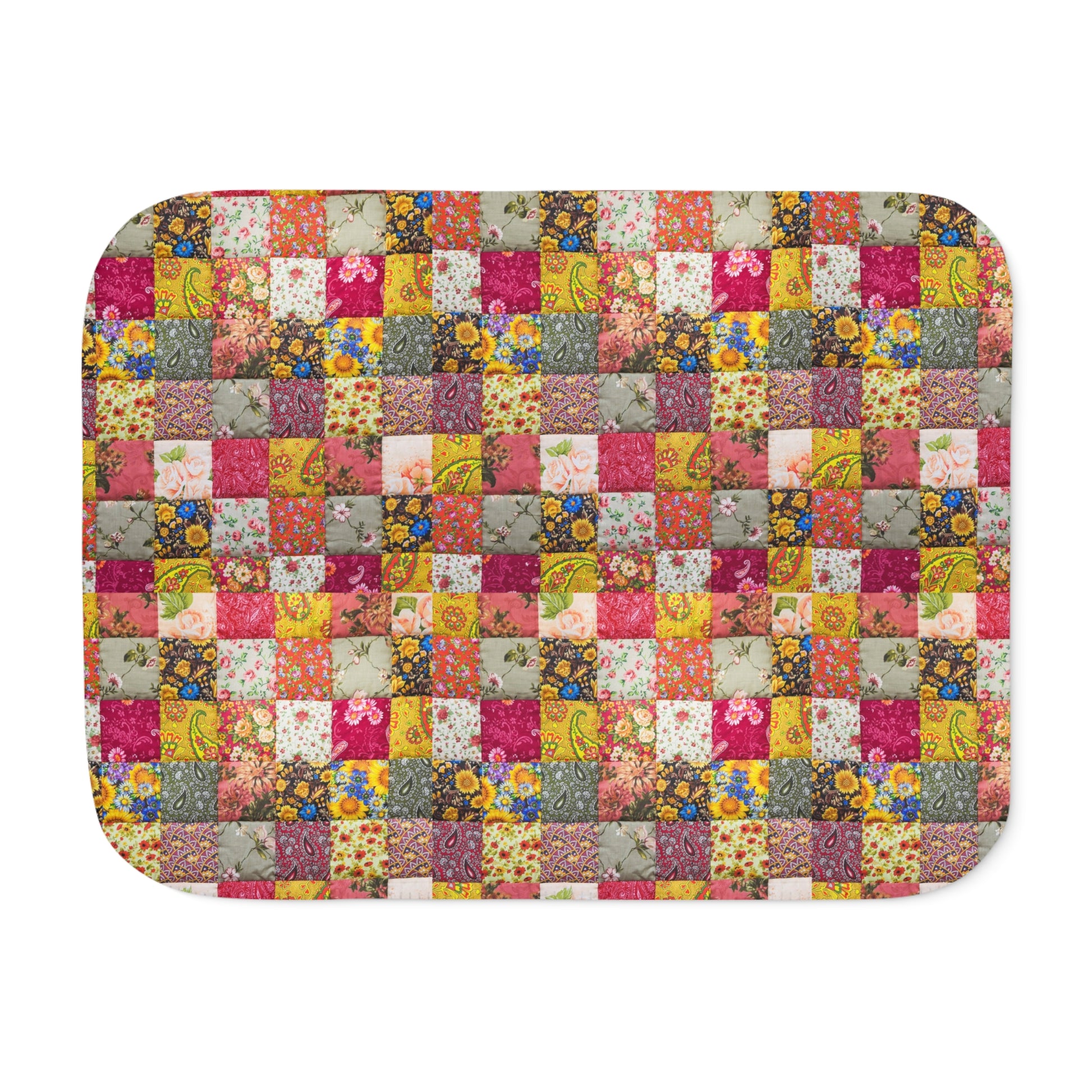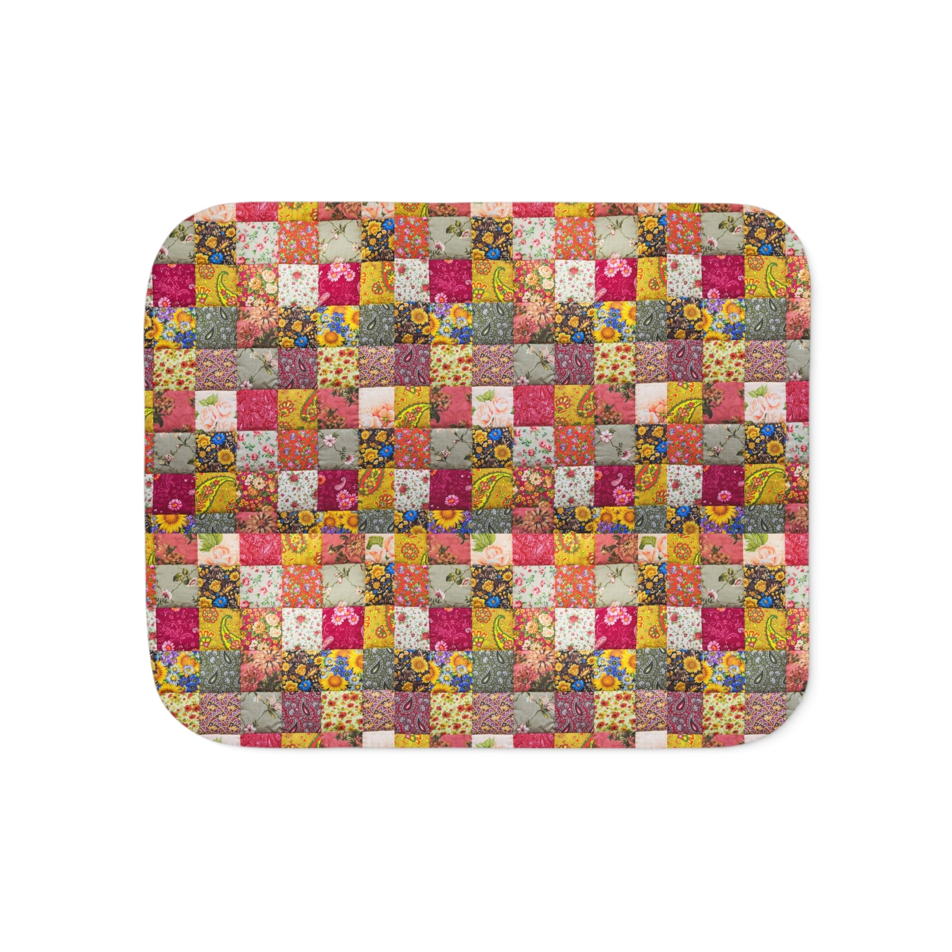 Floral Patchwork Sherpa Blanket