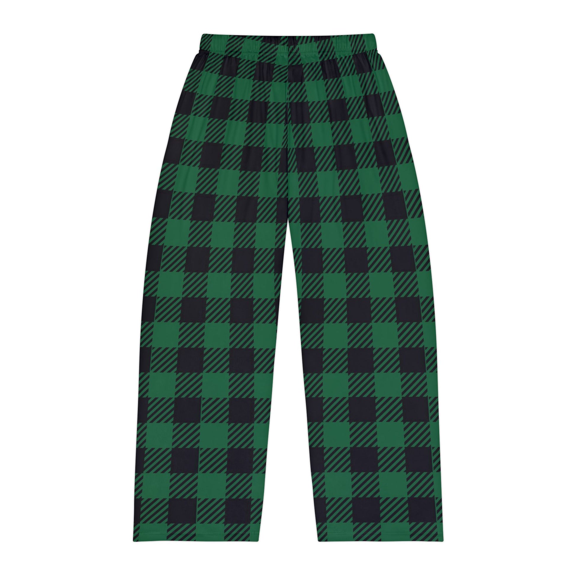 Wear the calm of a forest night. These pajama pants bring a deep green-and-black buffalo check straight to your living room — the kind of pattern that settles the eye and invites slow mornings. Lightweight brushed polyester feels smooth against skin and moves easily as you reach for coffee, walk the dog, or curl up with a book. The elastic waistband and soft hand-feel make them quietly comfortable for restless sleepers and weekend loungers alike. Thoughtful details like a printed size-and-care label and stitched seams matched to the design keep focus on the cloth and the pattern, not on tags or distractions. Made from durable polyester that holds its shape and dries quickly, these pants are made to live in and to wear again and again.