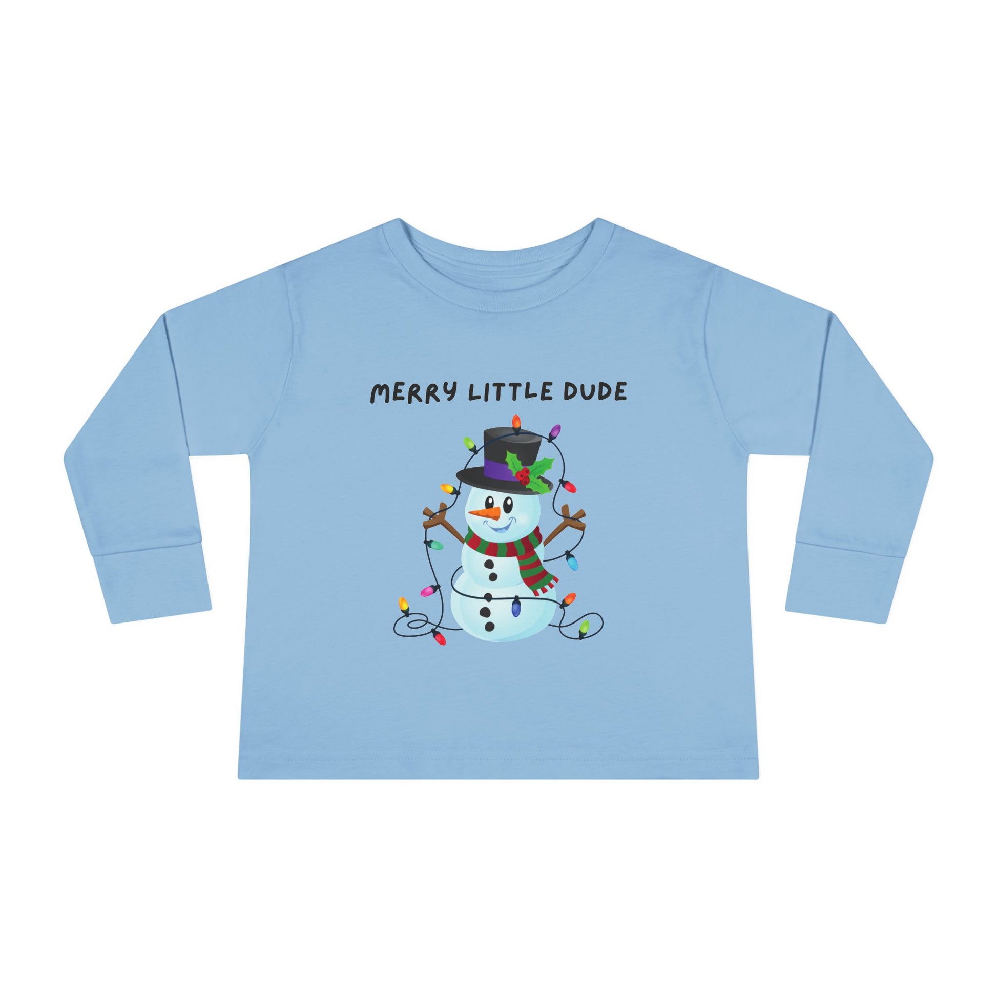 Let your little one shine this holiday season in the adorable “Merry Little Dude” Toddler Shirt! This cheerful snowman, wrapped in colorful Christmas lights and topped with a festive hat, brings all the fun and magic of the season to their outfit. Bright, bold, and full of personality, it’s the perfect pick for school parties, Christmas photos, cookie decorating, or cozy days at home.