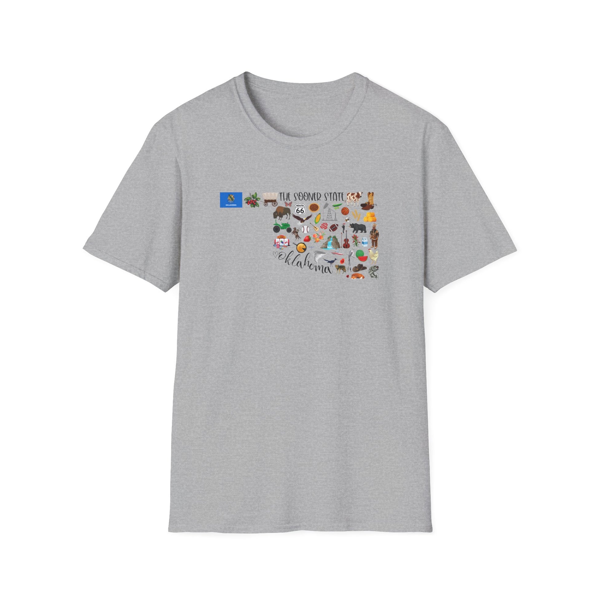 Available in Sport Green, Gray, and Natural, this adult tee is soft, breathable, and perfect for everyday wear, road trips, or gifting to your favorite Okie.