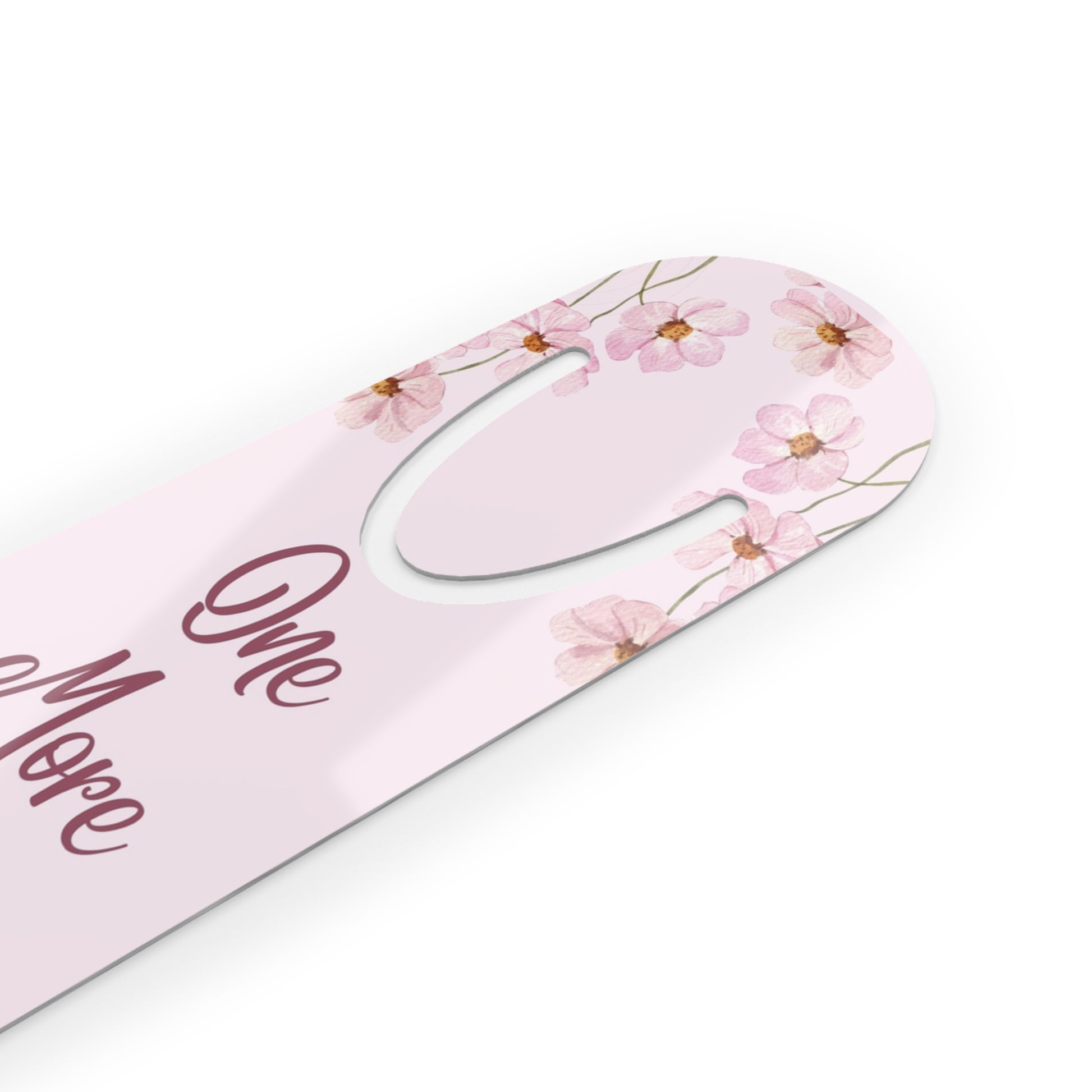 A slim, elegant aluminum bookmark that brings a soft, floral touch to quiet reading moments. Lightweight and durable, its rounded top and gentle U-shaped slot slip easily over pages without snagging. The front shows a delicate, pastel floral design with the whimsical phrase “One More Chapter,” adding a gentle nudge to linger in story worlds. Brushed aluminum on the back gives a modern contrast to the bright printed front, and the vivid colors stay crisp thanks to high-quality printing. Small and sturdy, it’s the kind of little object that finds its way into daily reading rituals — tucked into paperbacks, journals, or treasured novels — and makes each pause feel intentional and pretty.