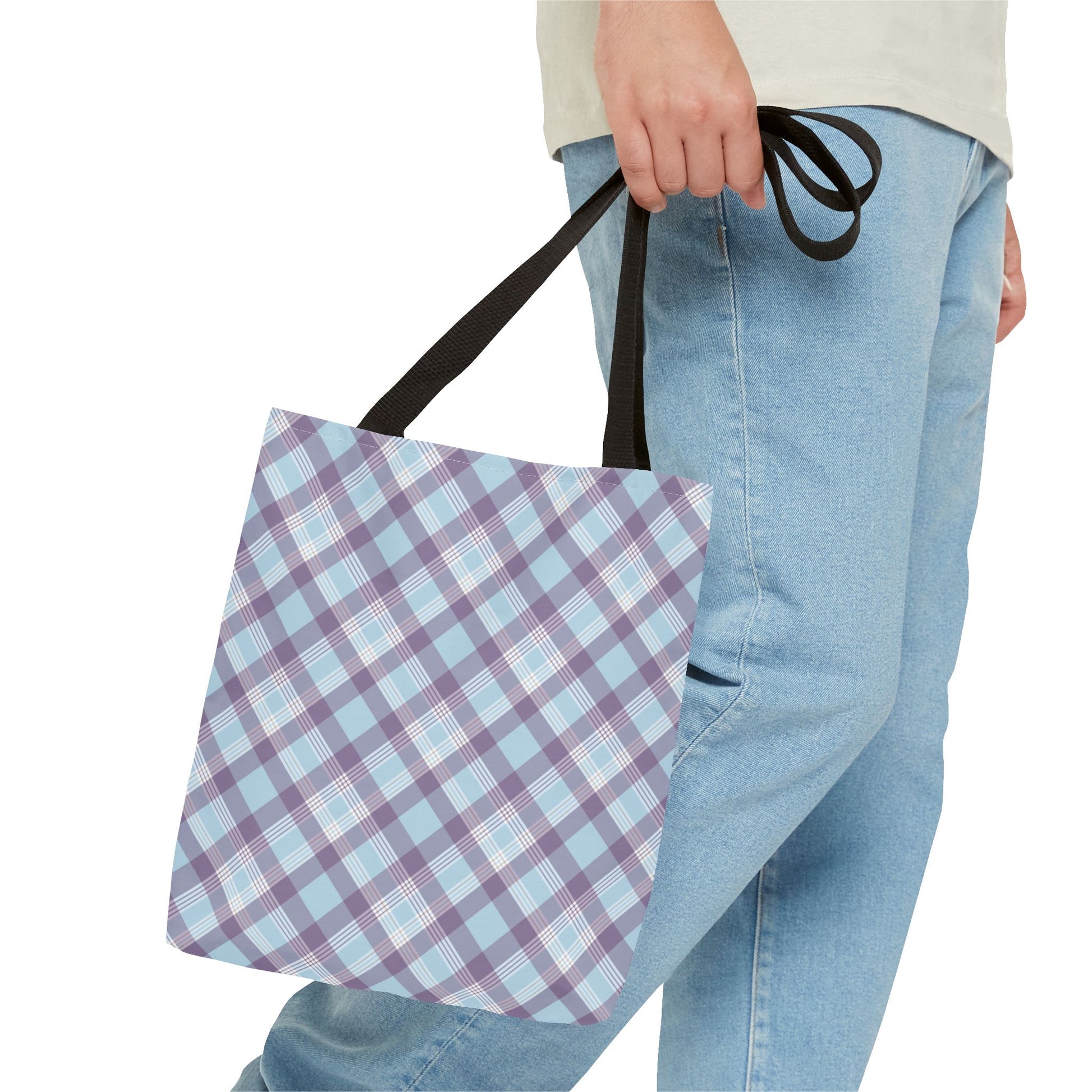 Soft, roomy, and quietly stylish — this tote brings a muted plaid into everyday life. The cool mix of periwinkle, soft blue, and lavender checks feels calm and collected, like a slow morning with a steaming cup on the kitchen table. Lightweight but structured, the bag holds its shape thanks to polyester body and boxed corners, so groceries, notebooks, or a knitting project stay organized without slumping. Reinforced handles and neat stitching mean this tote is made for repeat use: errands, market runs, or folding into a suitcase for a weekend away. It’s the kind of accessory you reach for when you want something simple that quietly elevates your routine.
