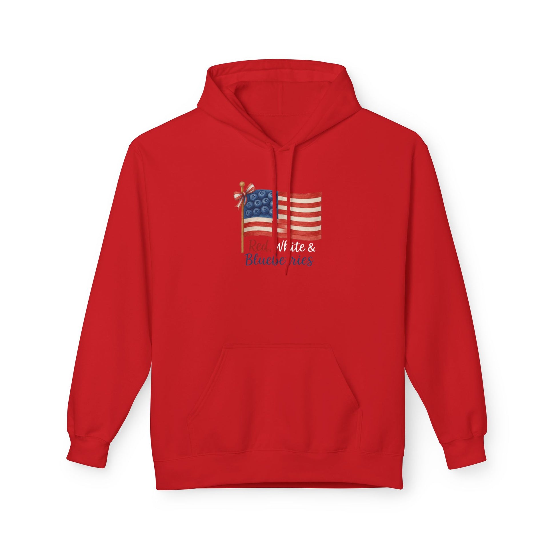 Sweet as summer and proudly patriotic—this cozy hoodie blends Americana charm with a playful twist! Featuring a classic American flag topped with a red-and-white striped bow, it’s a nod to both country pride and farmhouse style. Beneath the flag, the phrase “Red, White, and Blueberries” adds a fun, cheerful touch that’s perfect for sunny celebrations and cool summer nights.