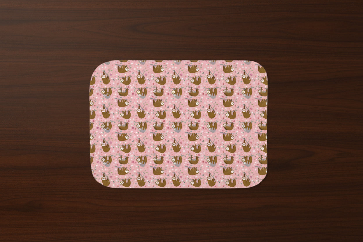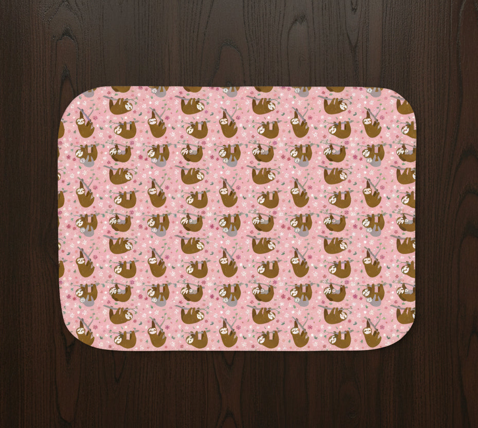 Wrap yourself in slow-morning comfort with this plush sherpa blanket. The top side showcases a playful, repeating sloth pattern on a soft pink field — tiny florals drifting between the sleepy figures — while the reverse is a cloud-like sherpa fleece in muted grey or warm beige. It feels weighty and cozy without being stifling, the rounded corners and neat stitching giving it a finished, homey look. Pull it over your knees during a rainy read, drape it across a favorite armchair, or let a sleepy pet claim a corner. The bright printed top keeps its color and detail wash after wash, while the sherpa back provides the kind of cuddly softness that invites lingering on the couch.