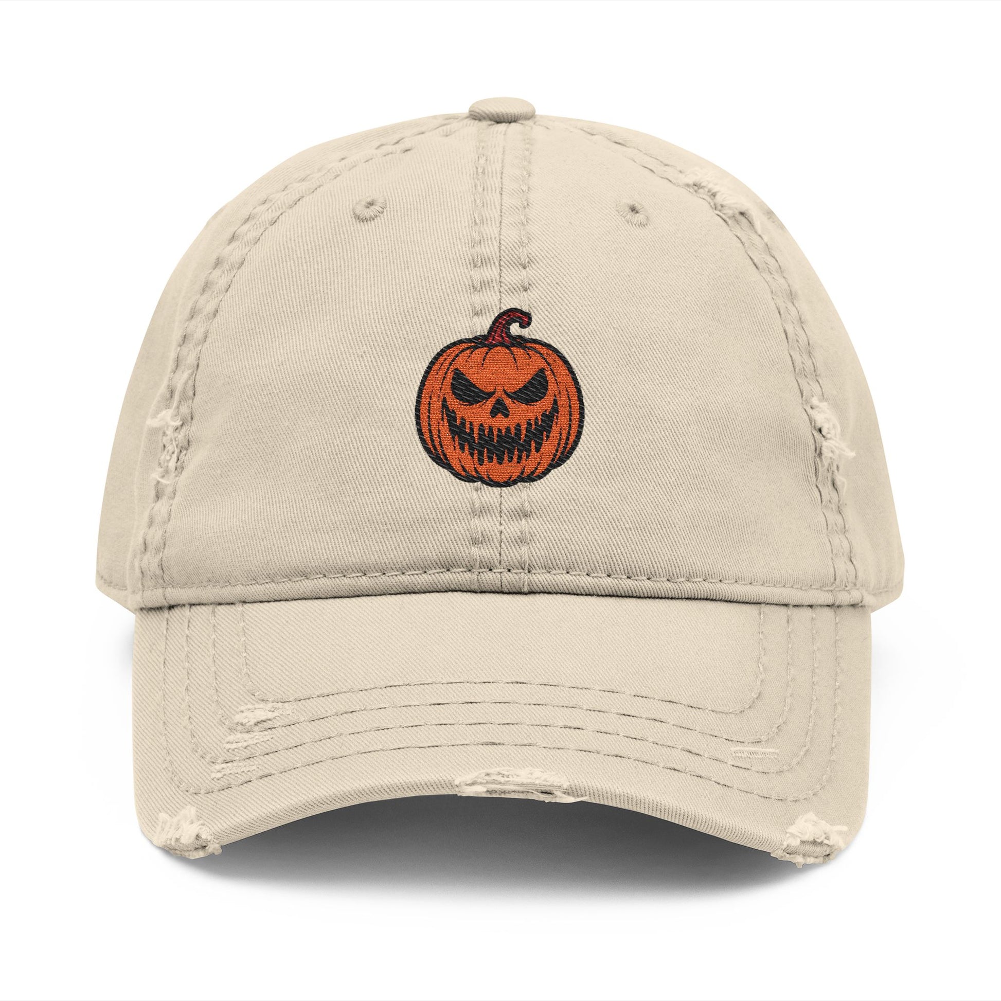 Spooky Pumpkin Embroidered Distressed Cap