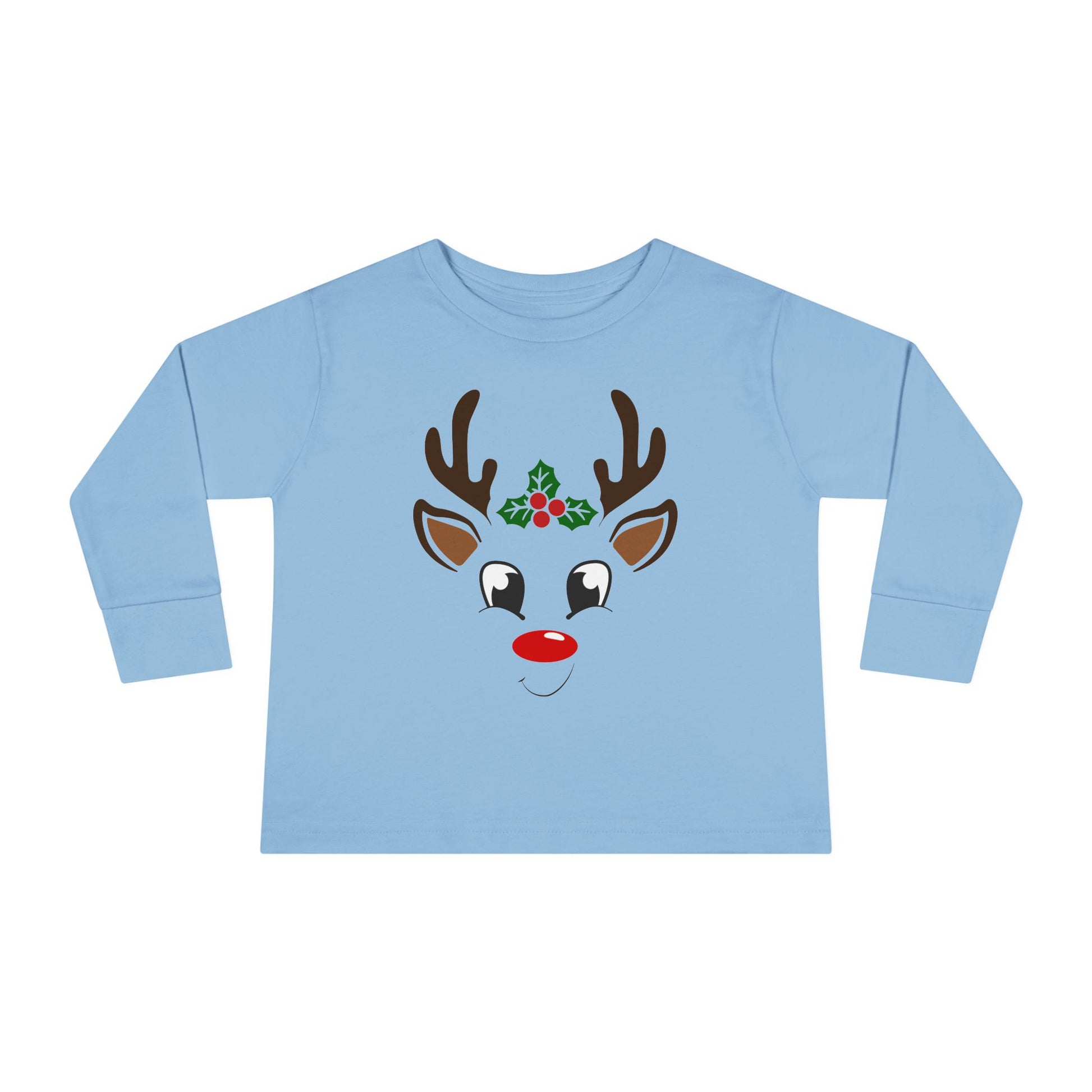 Bring extra holiday cheer to their wardrobe with this adorable Reindeer Face Toddler Sweatshirt! With its sweet antlers, bright red nose, and holly detail, this festive design is perfect for Christmas photos, school parties, and cozy winter days.