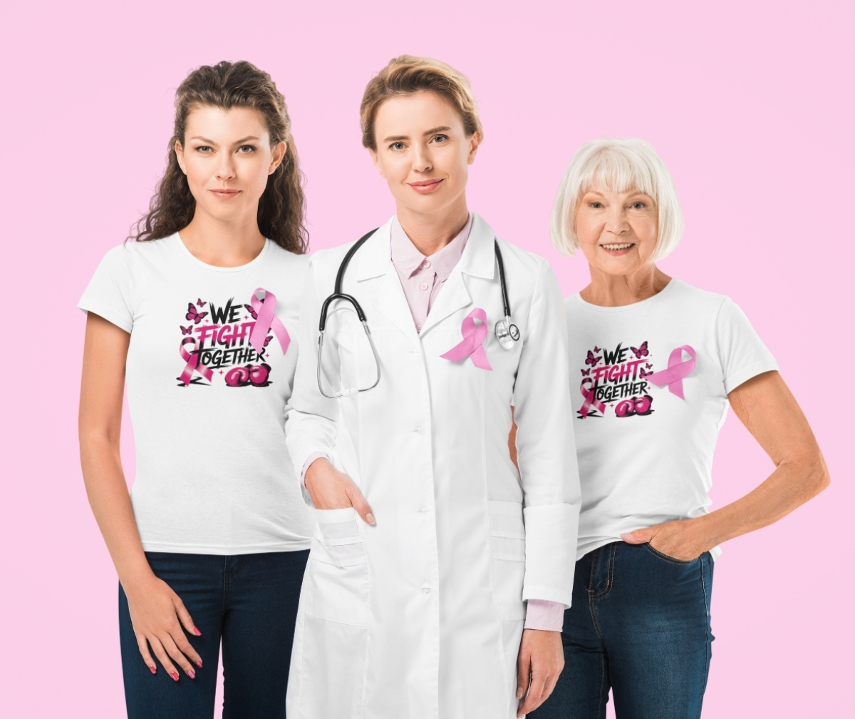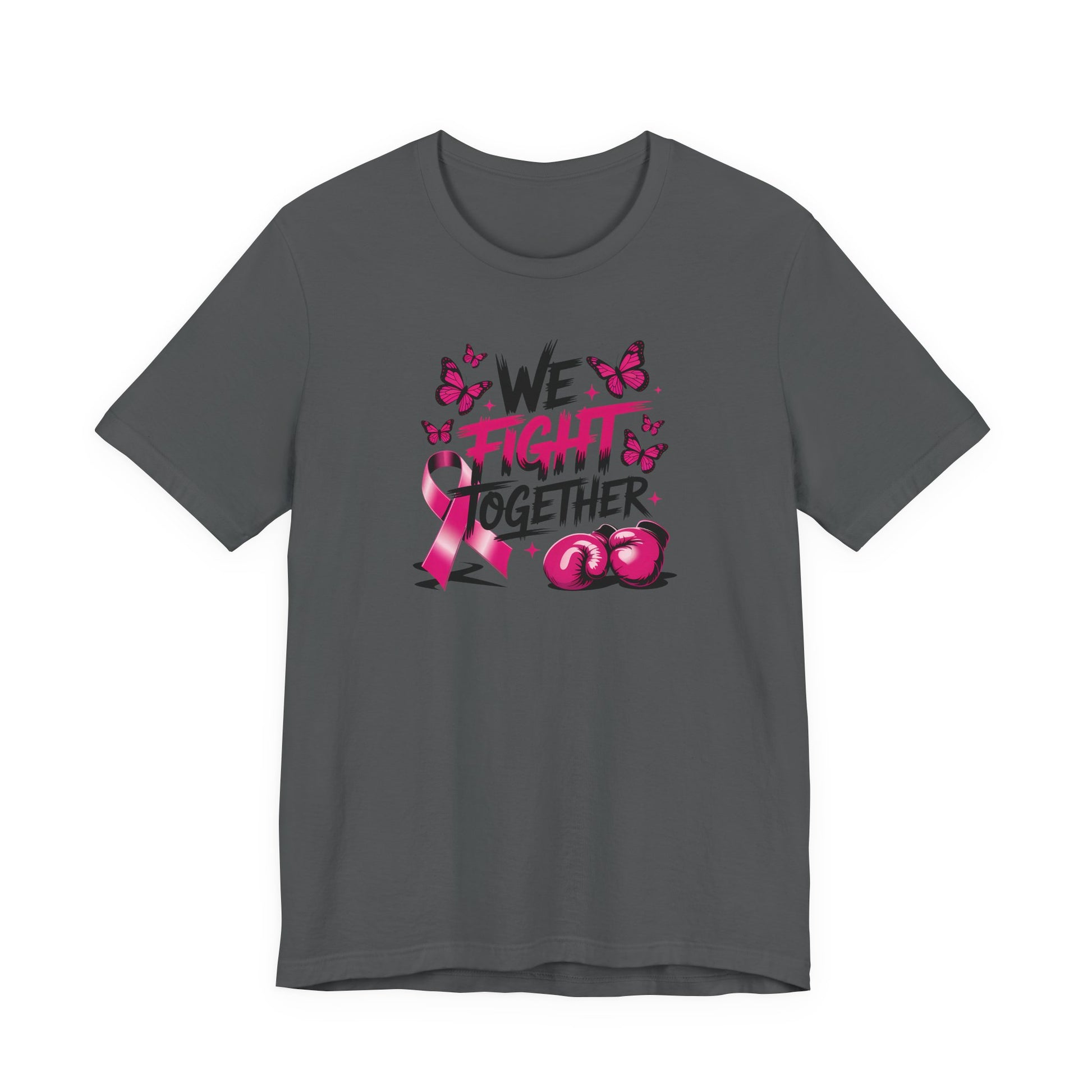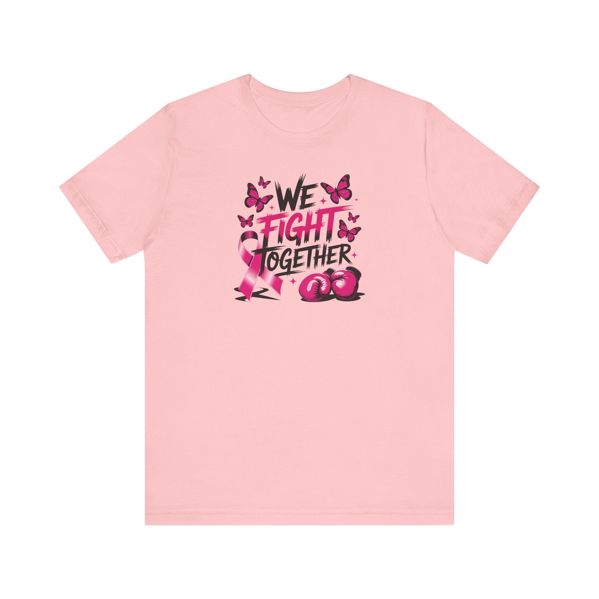 Show your strength and solidarity with this Breast Cancer Awareness T-Shirt. Designed in soft pink, this unisex tee features the inspiring message “We Fight Together” surrounded by pink butterflies, diamonds, boxing gloves, and the iconic breast cancer ribbon. A bold and meaningful way to honor fighters, survivors, and supporters alike.