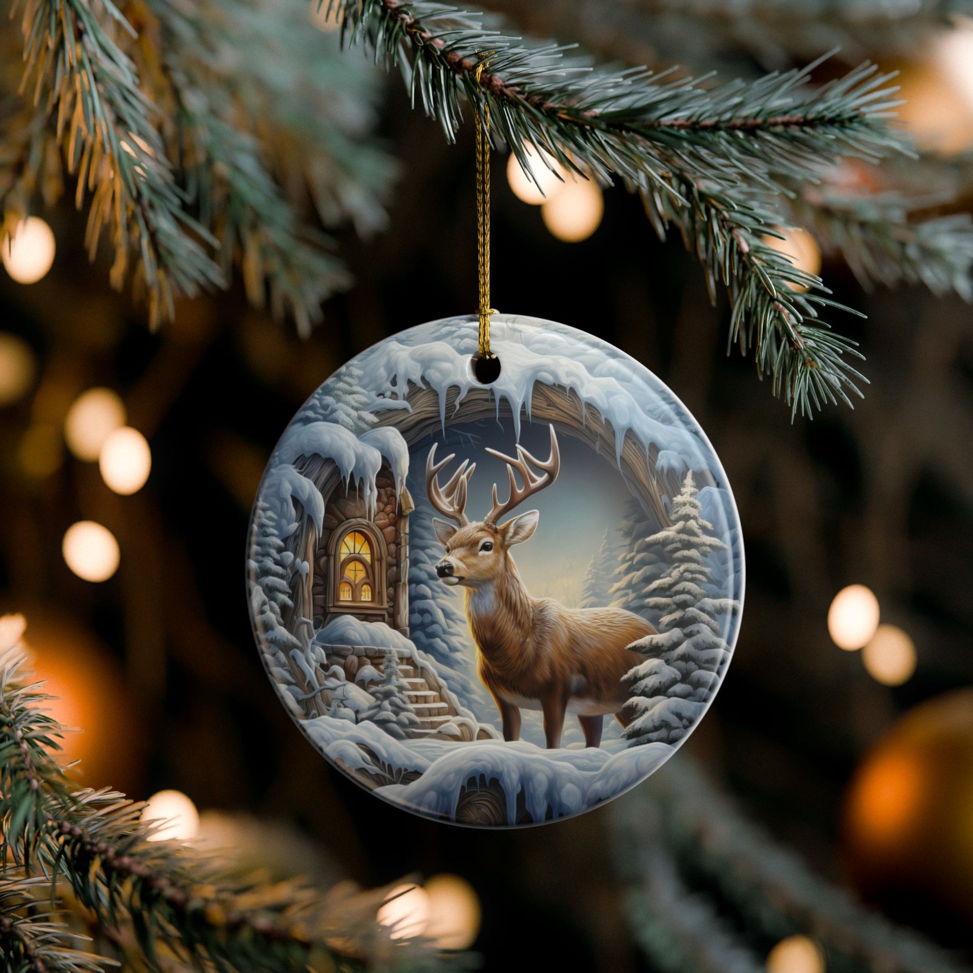 Each double-sided ceramic ornament is crafted to reflect the serenity of a winter’s night, blending rustic charm with timeless elegance. A perfect keepsake for nature lovers, cabin décor, or anyone who cherishes the quiet magic of the holidays.