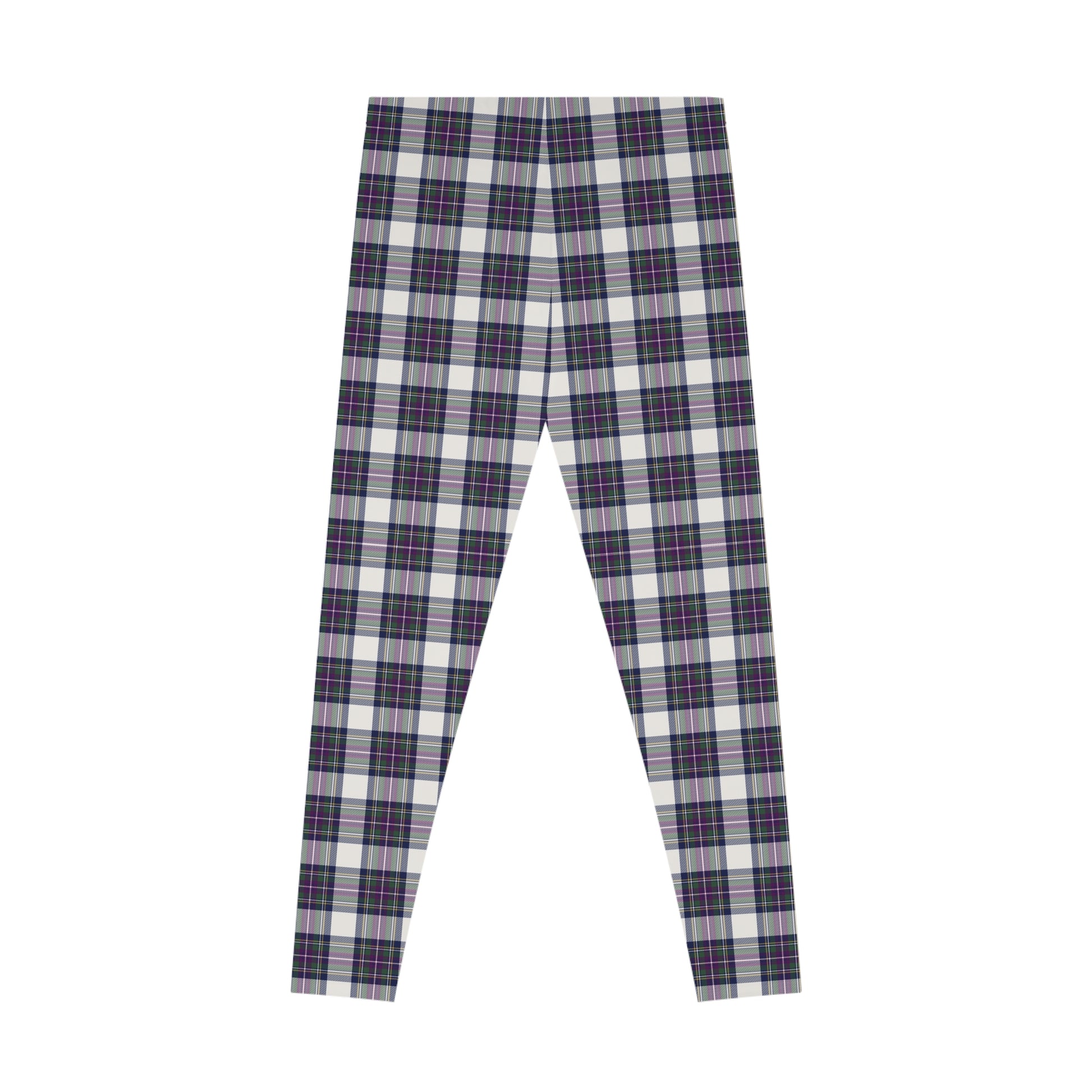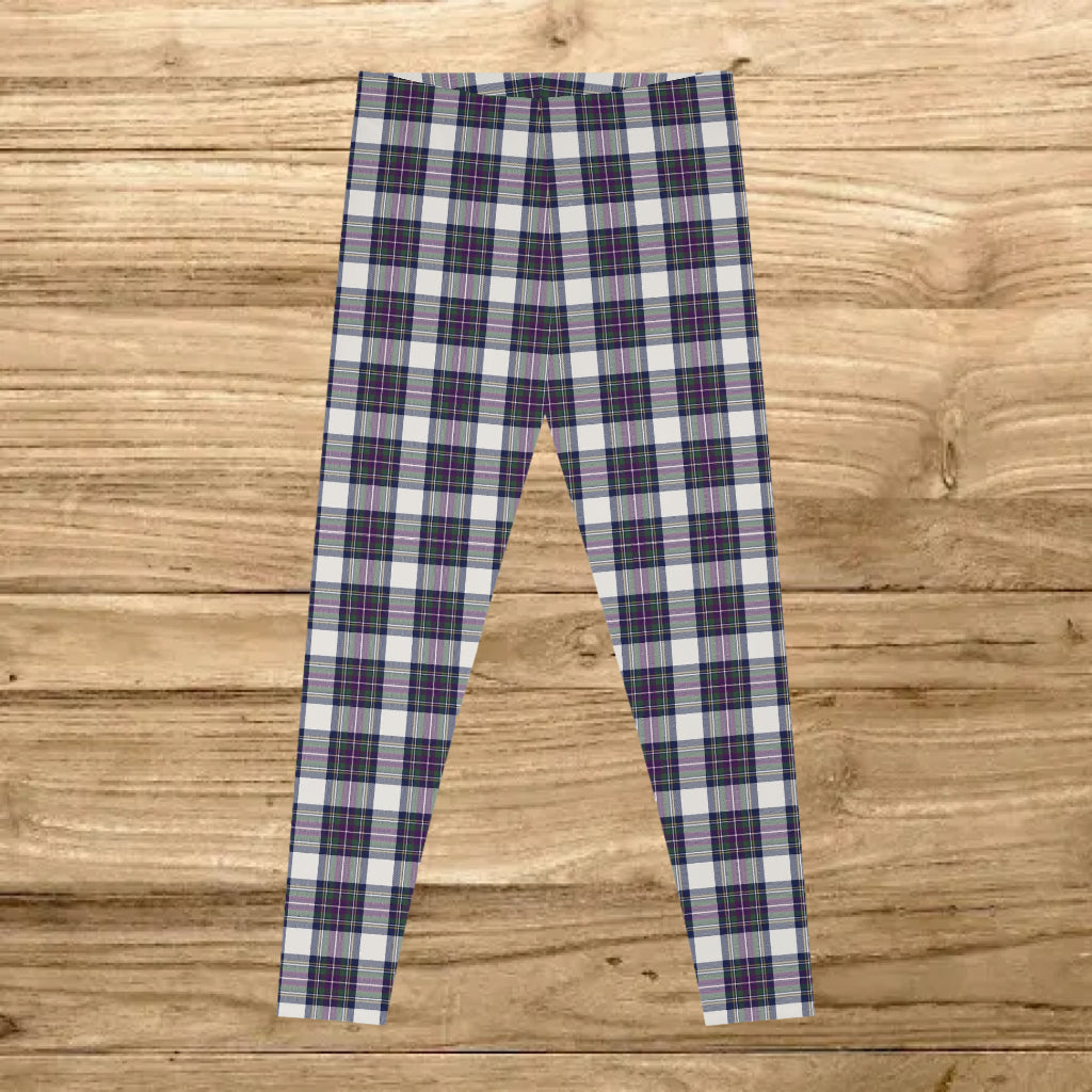 These ankle-length leggings bring a modern twist to classic tartan. The all-over plaid print—subtle lavender and deep charcoal on a clean white base—feels both cozy and crisp. Lightweight but substantial, the fabric stretches with your movements and keeps shape through commutes, studio sessions, and slow weekends. The mid-rise, thin elastic waistband sits comfortably at the waist without digging in, and the seam-free sides create a smooth, flattering silhouette that layers easily under long sweaters or cropped jackets. Wear them to add a bit of tailored pattern to everyday outfits or to ground a softer, cottage-inspired look.