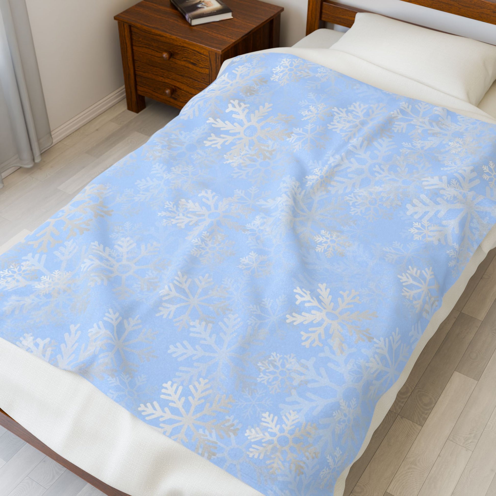 Wrap yourself in the magic of winter with our Winter Wonderland Velveteen Plush Blanket — a cozy, snow-kissed layer of comfort designed to bring warmth and cheer to every chilly evening. Featuring a delicate scatter of shimmering snowflakes on a frosty blue background, this luxuriously soft blanket feels just like a gentle snowfall against your skin.
